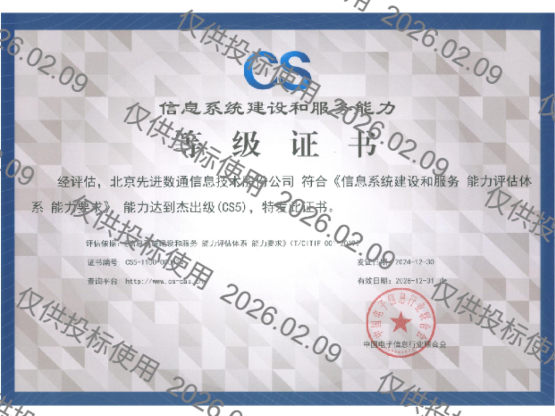 EVO视讯官网先后取得CMMIL5、软件能力成熟度五级(SPCA 5)、信息系统建设和服务能力评估体系(CS)5级、ITSS成熟度一级、信息系统安全集成服务资质二级、信息系统安全运维服务资质二级、国产化信息系统集成和服务能力评估四级(LS4)、北京市企业技术中心等资质认证,并取得ISO9001、ISO20000、ISO27001、ISO14001、ISO45001、ISO22301、ISO37001、ISO28001、GBT29490等标准体系认证,具备行业领先的技术开发、工程实施及服务保障能力。