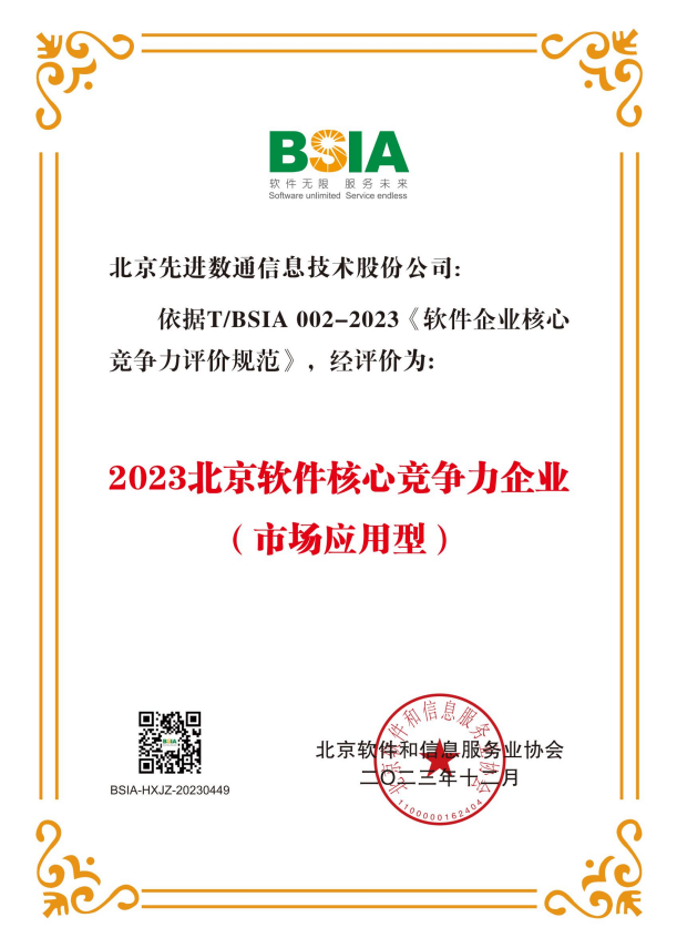 EVO视讯官网荣获“2023北京软件核心竞争力企业”荣誉