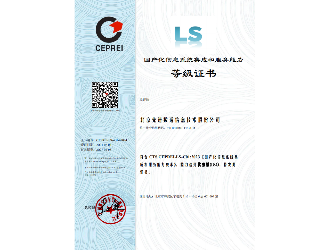 EVO视讯官网先后取得CMMIL5、软件能力成熟度五级(SPCA 5)、信息系统建设和服务能力评估体系(CS)5级、ITSS成熟度一级、信息系统安全集成服务资质二级、信息系统安全运维服务资质二级、国产化信息系统集成和服务能力评估四级(LS4)、北京市企业技术中心等资质认证,并取得ISO9001、ISO20000、ISO27001、ISO14001、ISO45001、ISO22301、ISO37001、ISO28001、GBT29490等标准体系认证,具备行业领先的技术开发、工程实施及服务保障能力。